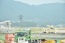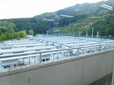 <校庭に立ち並ぶ仮設住宅> |