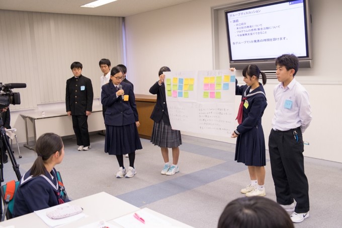 東北参加校5校の代表生徒が集まり、中学生の視点から見た被災地の現状について話し合い、今後どのような課題に取り組みたいかを