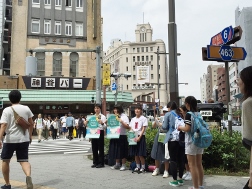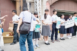 ・マラソン前日、都内で東北と東京の生徒が合同で募金活動を行う。