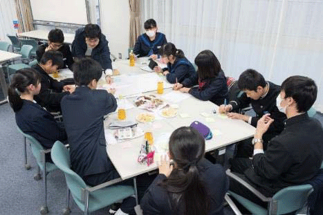 地域課題・募金の支援テーマについて、生徒たちが考える。