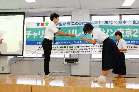 ・集まった募金を東北、熊本参加校に贈呈し、使途についての案を発表する。