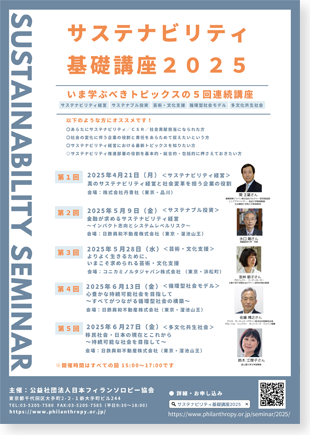 一方で、社会問題やサステビリティに対する経営目標に向けて、企業パーパスと社会貢献、もしくは経営と現場をつなぐハブとして、いわば翻訳者のような役割を担当されている企業の担当者の皆さまのご苦労の声も耳にしています。この変化の激しい時代において、日々のビジネス環境の変化にアジャストすることはもちろん大切ですが、社会問題の本質や世界の潮流を知ることが、自らの中に中長期的な視点や戦略を生み出すヒントになることと思います。