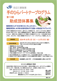 田辺三菱製薬 手のひらパートナープログラム第13期 助成先団体が決定しました。