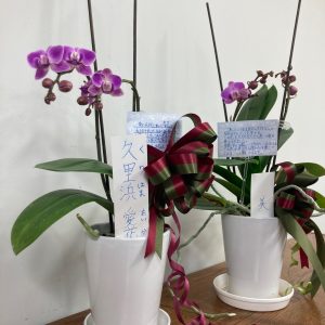 つぼみの鉢も、寄贈先で咲くので大丈夫です。そもそも蘭は温室で育てるもの。みんなの部屋で咲かせるために、愛情をもってお世話をしてくれたのだと思います。ラッピングしているときに、葉を拭いたり、箱に花が触れると大丈夫かと心配したり、その様子からも愛情が伝わりました。
