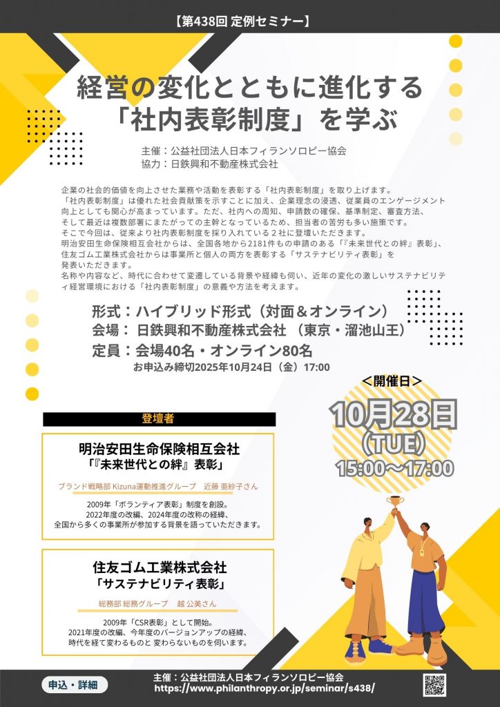 10月のセミナーでは、企業の社会的価値を向上させた業務や活動を表彰する「社内表彰制度」を取り上げます。